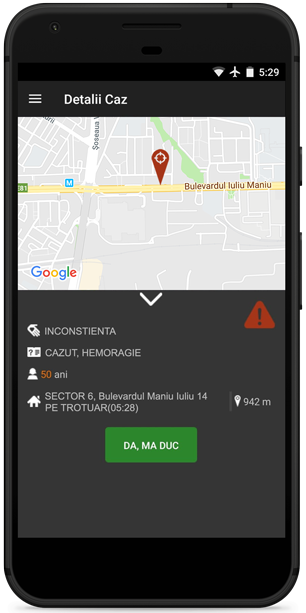 Se efectuează apelul 112 pentru semnalizarea locației victimei într-un loc public din zona București-Ilfov, se înregistrează apelul în dispecerat, se trimite o ambulanță sau un echipaj SMURD, dar în același timp toți voluntarii înscriși în program care se află la o distanță de cel mult 1000 de metri față de locul urgenței primesc o alertă pe aplicație sau un SMS cu vârstă, locație, descriere. Situându-se foarte aproape de victimă, aceștia ajung în 5 minute sau mai puțin, la timp pentru a efectua manevrele de prim ajutor până la sosirea echipajului de prim ajutor specializat.